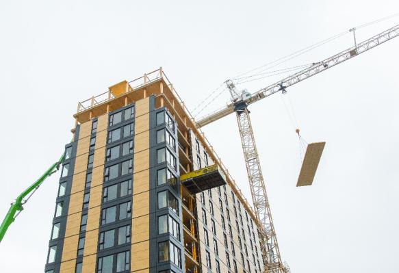 施工期間的無(wú)保護(hù)木結(jié)構(gòu)少于四層.